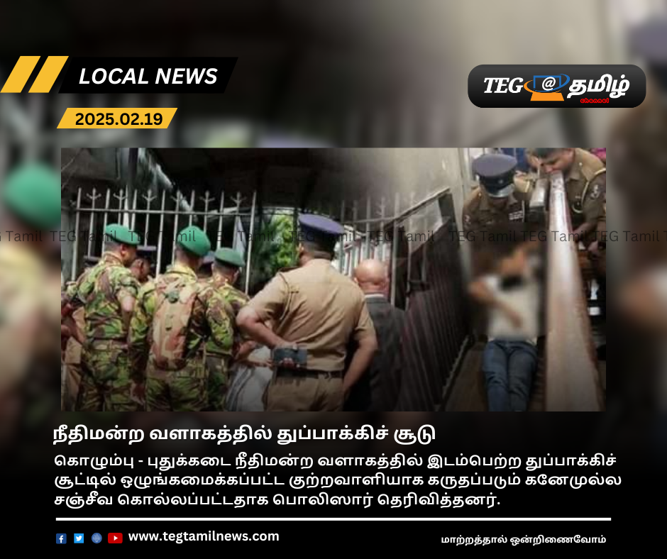 புதுக்கடை நீதிமன்ற வளாகத்திற்குள் சற்று நேரத்திற்கு முன்பு துப்பாக்கிச் சூடு சம்பவம் ஒன்று பதிவாகியுள்ளது.