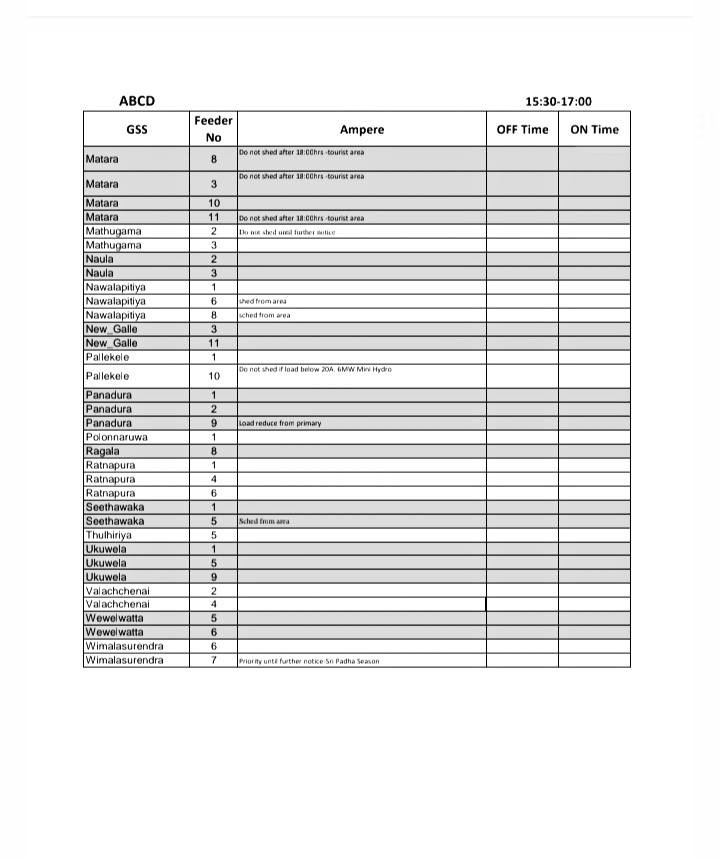 இந்த மின் விநியோக துண்டிப்புக்கு இலங்கை பொதுப் பயன்பாடுகள் ஆணைக்குக்குழு அங்கீகாரம் வழங்கியுள்ளது.
