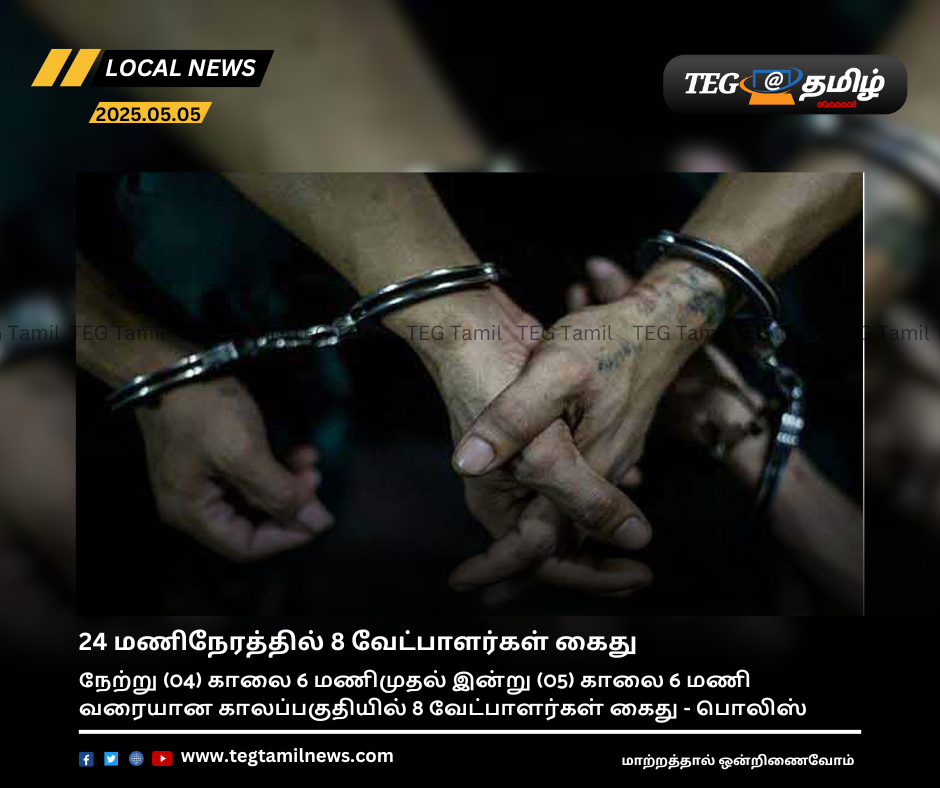 உள்ளூராட்சி மன்றத் தேர்தல் தொடர்பில் கடந்த 24 மணிநேரத்தில் 8 வேட்பாளர்கள் கைது செய்யப்பட்டுள்ளதாக பொலிஸார் தெரிவித்தனர்.