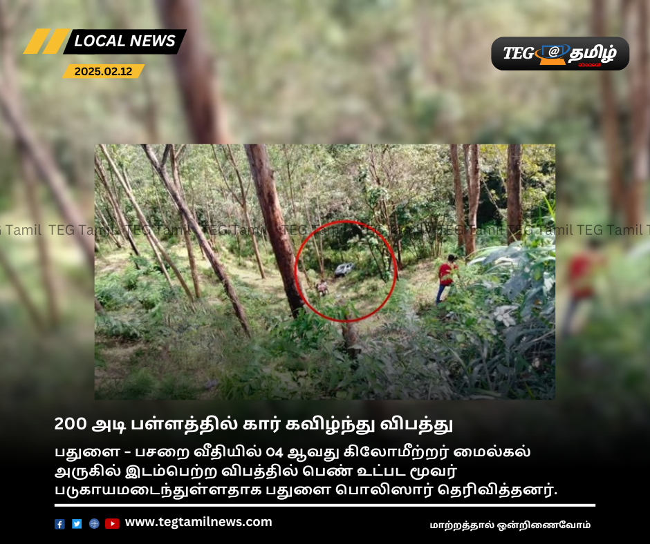 கார் ஒன்று வீதியை விட்டு விலகி 200 அடி பள்ளத்தில் விழுந்ததில் இந்த விபத்து இடம்பெற்றுள்ளது.
