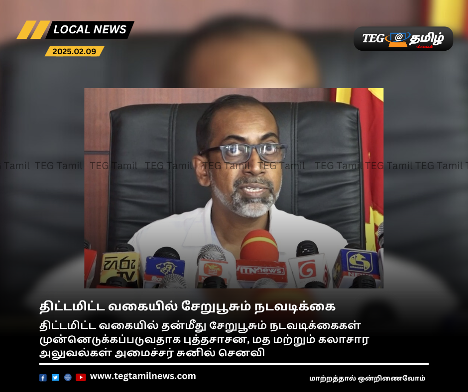 திட்டமிட்ட வகையில் தன்மீது சேறுபூசும் நடவடிக்கைகள் முன்னெடுக்கப்படுவதாக புத்தசாசன, மத மற்றும் கலாசார அலுவல்கள் அமைச்சர் சுனில் செனவி தெரிவித்துள்ளார்.
