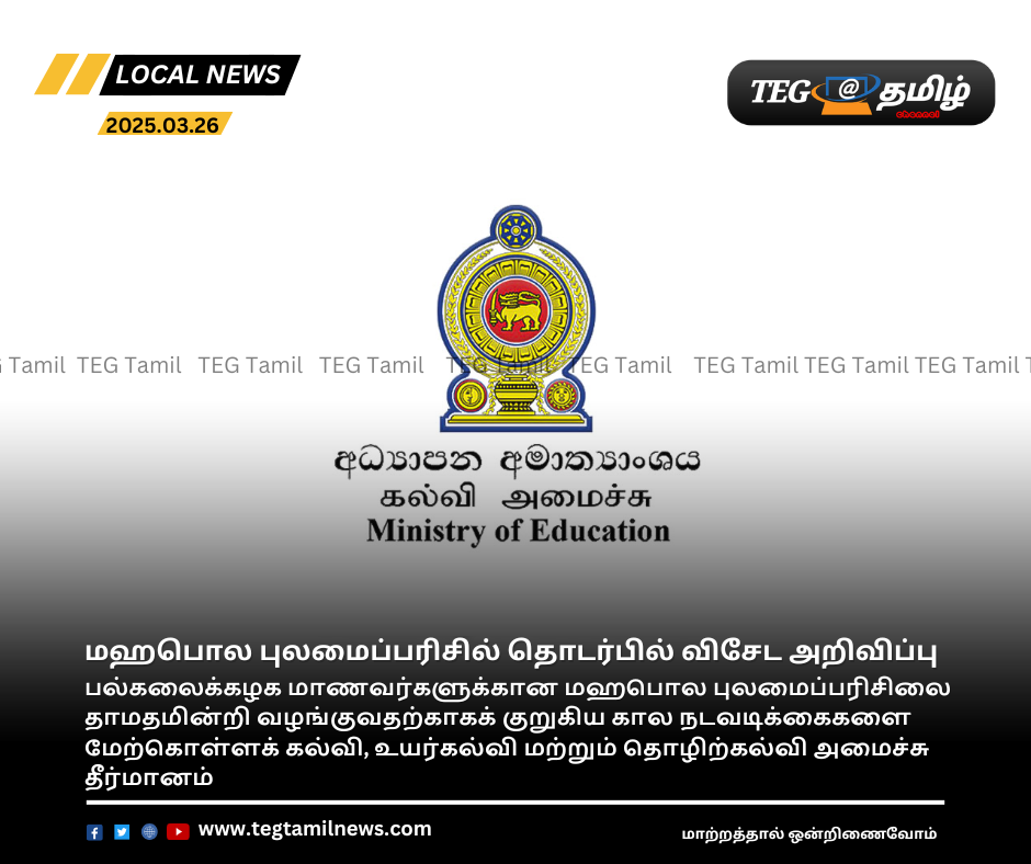 பல்கலைக்கழக மாணவர்களுக்கான மஹபொல புலமைப்பரிசிலை தாமதமின்றி வழங்குவதற்காகக் குறுகிய கால நடவடிக்கைகளை மேற்கொள்ளக் கல்வி, உயர்கல்வி மற்றும் தொழிற்கல்வி அமைச்சு தீர்மானித்துள்ளது.