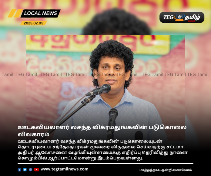ஊடகவியலாளர் லசந்த விக்ரமதுங்கவின் படுகொலையுடன் தொடர்புடைய சந்தேகநபர்கள் மூவரை விடுதலை செய்வதற்கு சட்டமா அதிபர் ஆலோசனை வழங்கியுள்ளமைக்கு எதிர்ப்பு தெரிவித்து நாளை கொழும்பில் ஆர்ப்பாட்டமொன்று இடம்பெறவுள்ளது.