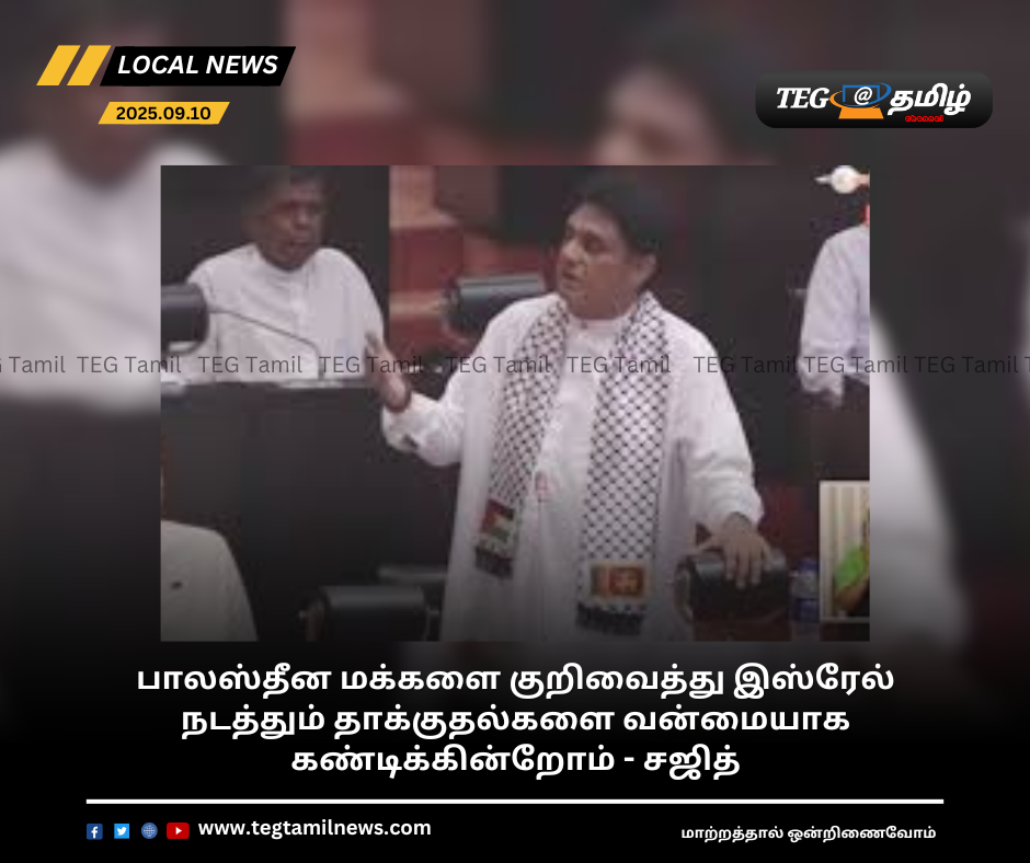 பாராளுமன்றத்தில் இன்று (09) பாலஸ்தீன இஸ்ரேல் மோதல் குறித்த தனது கருத்துகளை தெரிவிக்கும் போது எதிர்க்கட்சித் தலைவர் சஜித் பிரேமதாச இவ்வாறு தெரிவித்தார்.